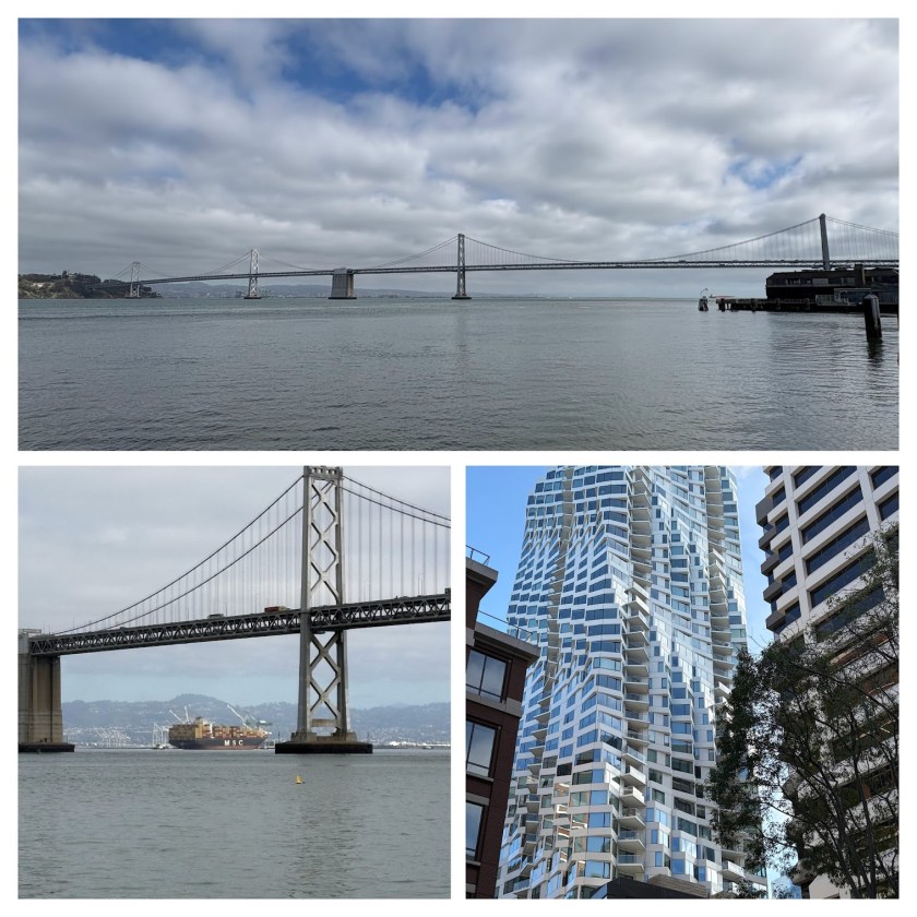 The transportation options in that one strip of land is astounding: cruise ships, daily commuter ferries, sailboats, underground trains, bridges – Bay Bridge & on a good day a view of the Golden Gate Bridge, cars, self-driving cars – Venmo’s, tramcars over a 100 years old. Some days, you can see the odd horse drawn carriage – a pure tourist attraction, but alien snippets need not know that.