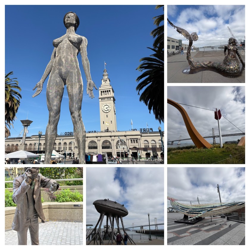 There are statues by the pier – Mahatma Gandhi tucked away from the main hustle and bustle. A small diminutive statue compared to the large ‘Woman’ statue in front of the Ferry Building. But even small, his importance draws one near. Tourists are there taking photographs almost everyday. The mermaid, jelly fish, sea lion, dolphin statues along the pier are whimsical and reflective of the fantastic lifeforms on Earth.