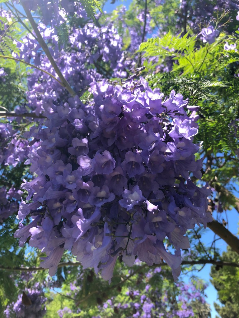 These are summertime joys. California is full of flowers in the summer. Even as the sun beats down on your head, you can’t help enjoying the blooms. The huge angel’s trumpet flowers, the large hibiscus and magnolias, or the smaller chamomiles, and aster, they all attract your attention. There is one garden that boasts of all colors and varieties of hydrangeas. I love them.