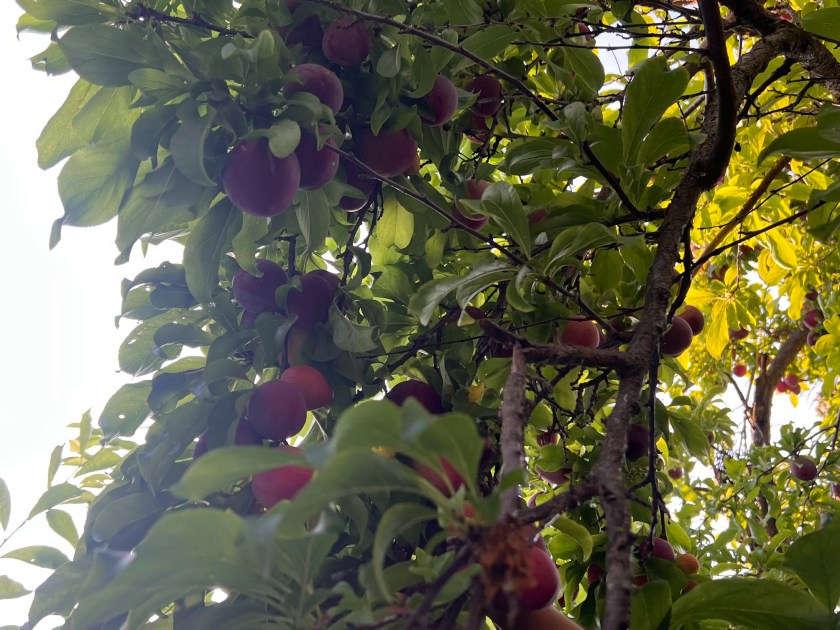 Some days I would gaze up at the branches – grateful for the bounty. Other days, I would step into a mushy one that plopped into my path and spattered and mutter to myself. Plum season is upon us, and nobody is spared. Neighbors, gardeners, cleaners, household helpers, friends, family. Everybody is gifted with plums.